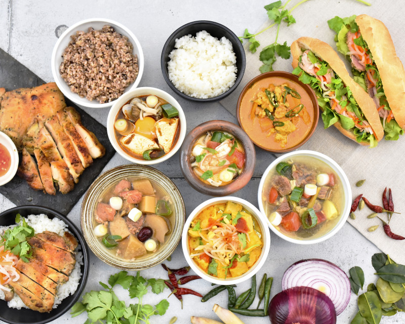 スープ&ライスセット、タイBBQチキンライス、シンガポールチャーシューライス