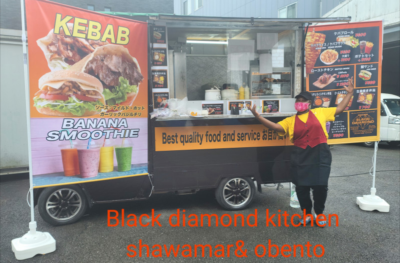 ケバブ、お弁当対応可能(生姜焼き、ハヤシライス、ローストチキン)、アフリカ料理、スムージー、ソフトドリンク、等