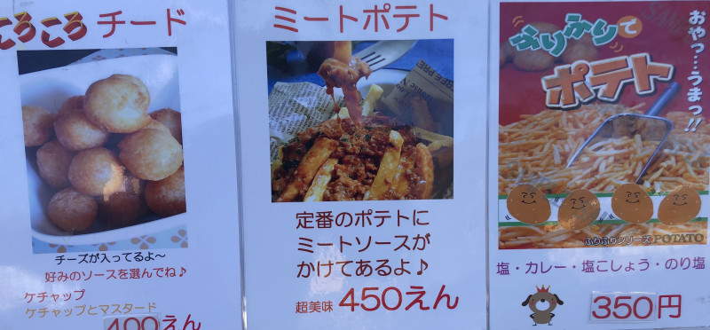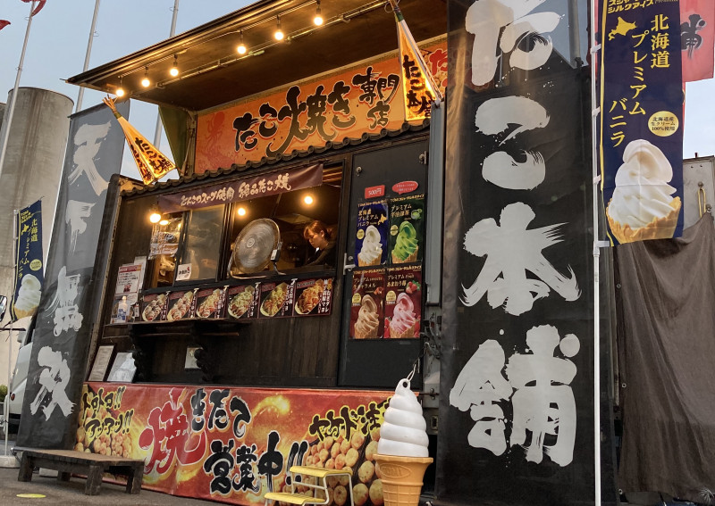 たこ焼き、唐揚げ、ポテト、チュロス、フランクフルト、クロワッサンたい焼き、餃子、丼ぶりメニュー、ドリンク系