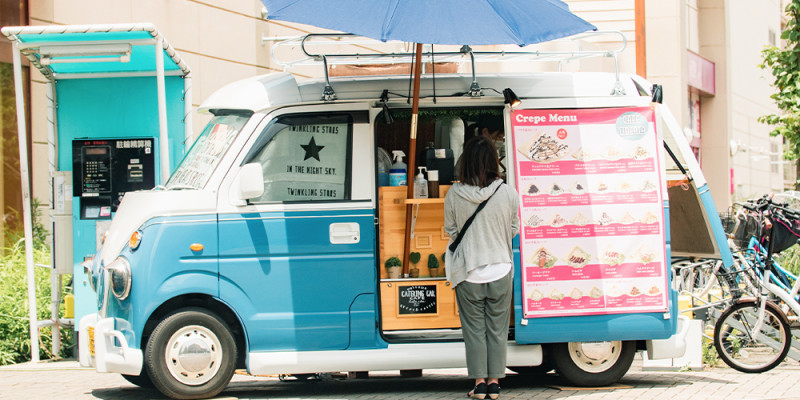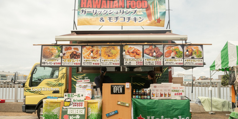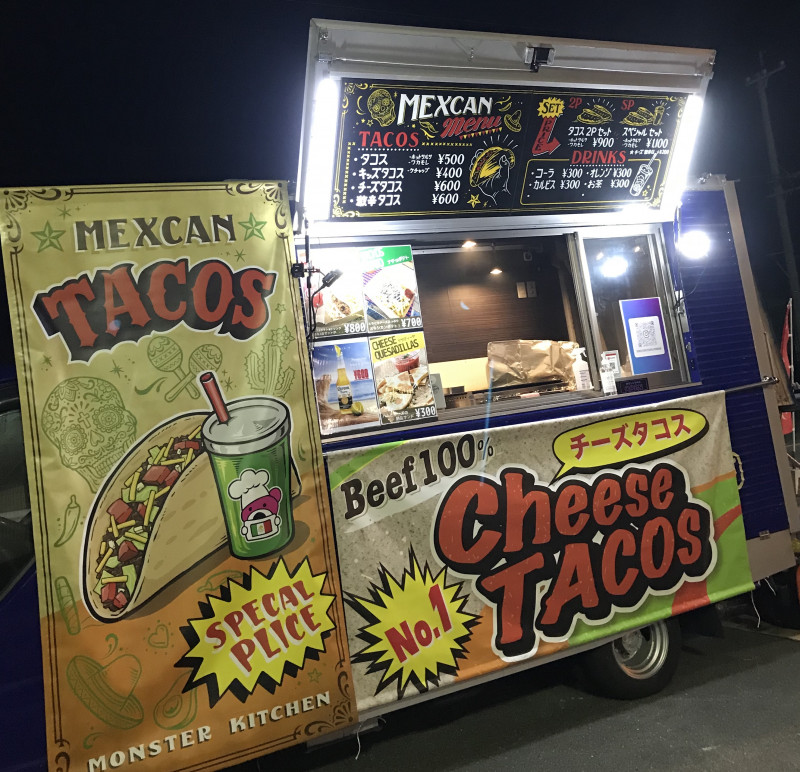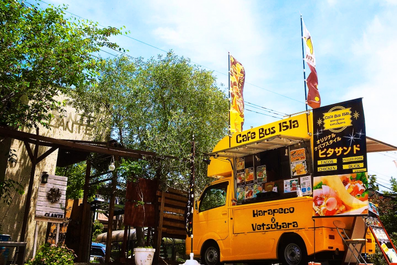ピタサンド(タコス・BBQビーフ・チキンなど)/タコライス/レモネード/バナナジュース/クロワッサンフルーツサンド/ビールなど