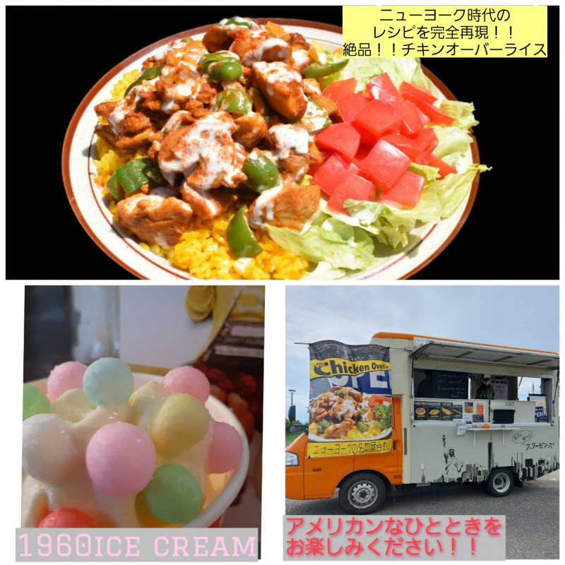 カレー、ガパオライス、ステーキ丼、ばくだんタコ焼き、チーズハットク、肉巻きおにぎり、唐揚げ、ケバブサンド、ドリンク、スイーツ、かき氷、ソフトクリーム