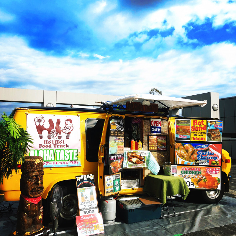 ガーリックシュリンプ、ハワイアンステーキ、オレンジチキン、ハワイアンポーク、チーズステーキサンド、ハワイアングリルドチーズサンド、マナプア、ワイキキチャウメン、スパムむすび、シェイブアイス、ハワイアンコーヒー、他