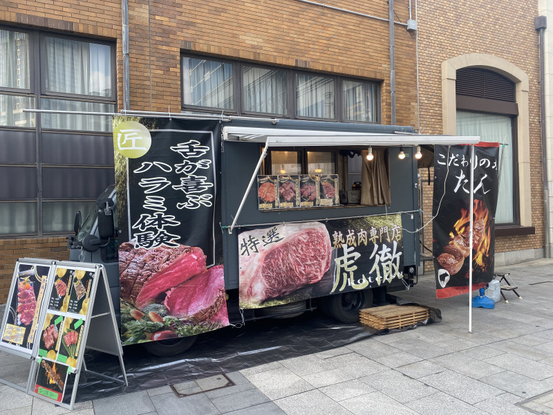 ハラミステーキ重 串焼き 焼き芋 ローストビーフサンド 唐揚げ ふりふりポテト 焼き芋 たこ焼き 焼鳥 串焼き ビール チャーハイ ソフトドリンク