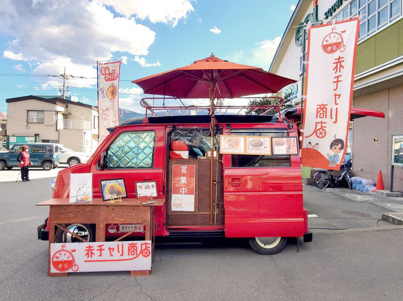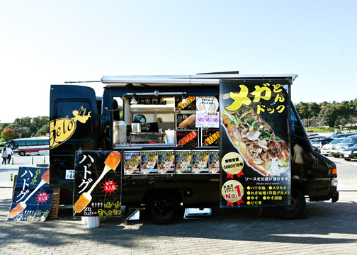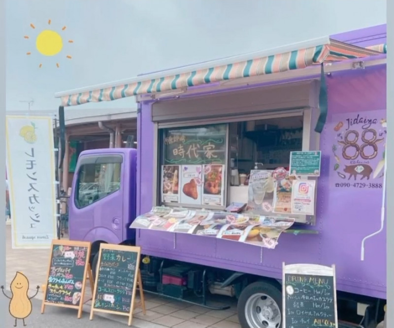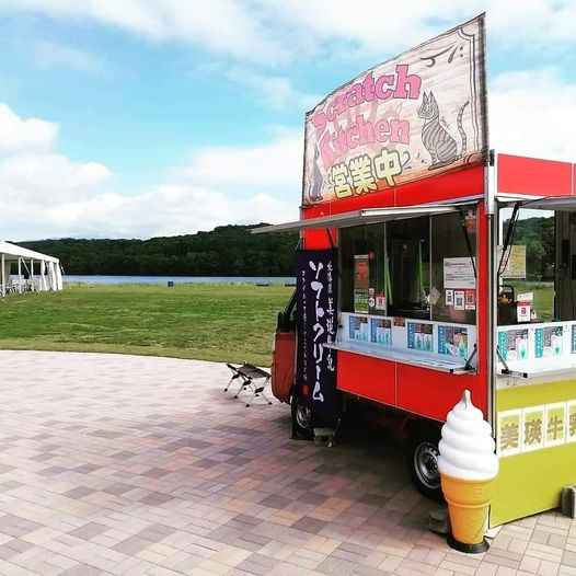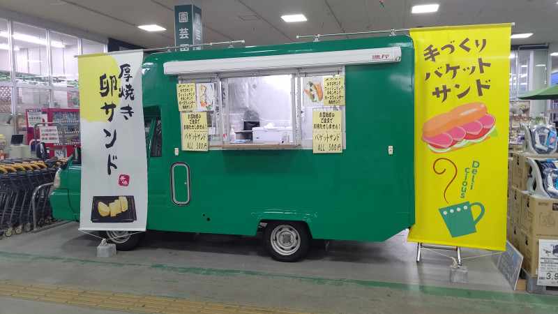 バゲットサンド、ソフトクリーム、サーターアンダギー、横手焼きそば、唐揚げ、ワッフルボール