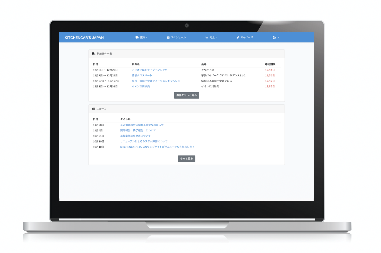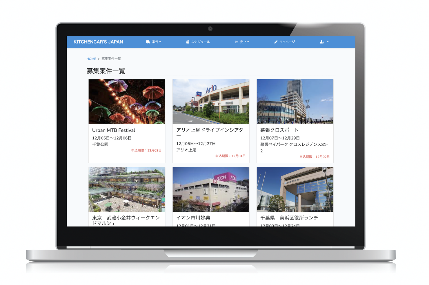 SNSだけではなく、店舗と同様キッチンカーにもホームページが必要です。しかし、ゼロからページを作るとなるととても大変です。KCJ上にページを作成する事で、ホームページを作る必要がなくなります。